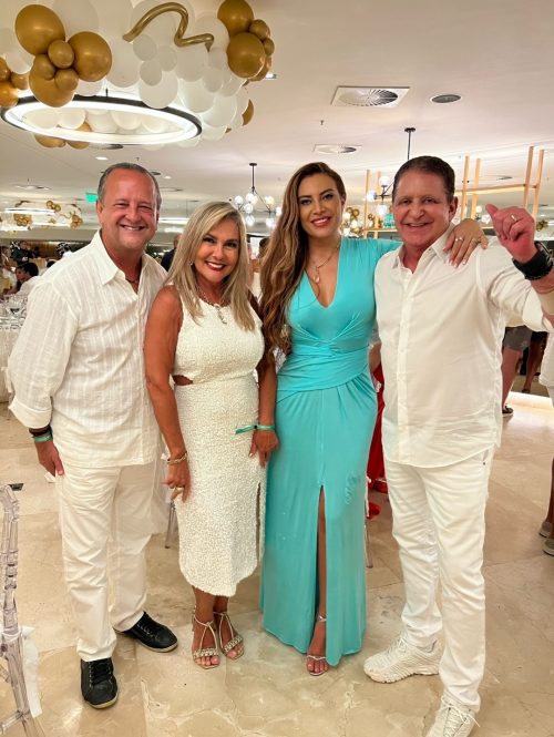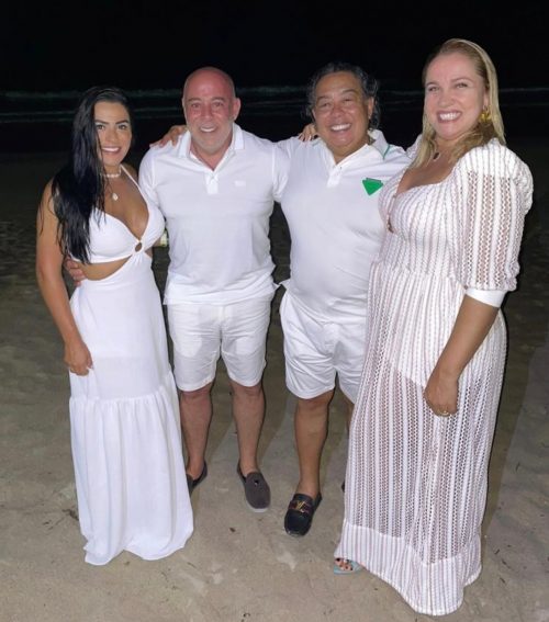 A empresária Jéssica Libório e o Head of Markets do BTG PACTUAL, Uzi Shalev, juntos com Otacilio Ramalho do ORBANK e Angela Tiago estiveram no Réveillon na praia de Carneiros em Pernambuco.