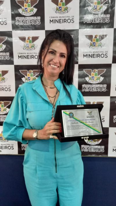 A empresária Gabriela Vilela, foi homenageada no último dia 15 de dezembro na Câmara de Vereadores do Município de Mineiros com o Título de Cidadã Mineirense proposto pelo vereador Edmar Andrade . No evento estiveram presentes o Prefeito Aleomar Rezende, autoridades, amigos e familiares.