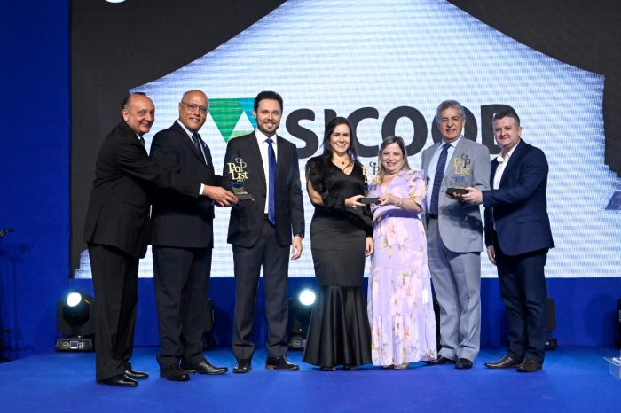 A 30ª edição do prêmio Pop List homenageou nesta quarta-feira, 26 de outubro, as marcas mais lembradas pelos goianos, entre elas o Sicoob, que venceu nos segmentos: cooperativa de crédito rural, cooperativa de crédito e cooperativismo. Representando o Sicoob UniCentro Br, maior cooperativa do sistema Sicoob com atuação no Centro-Oeste, o diretor de Relacionamento e Inovação, Diogo Mafia Vieira e o diretor de Negócios, Evandro Freo, marcaram presença na solenidade.