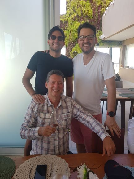 Luciano Carneiro passou o Dia dos Pais feliz em almoço com os filhos Flávio e Rafael no restaurante do seu Hotel Rio Vermelho.