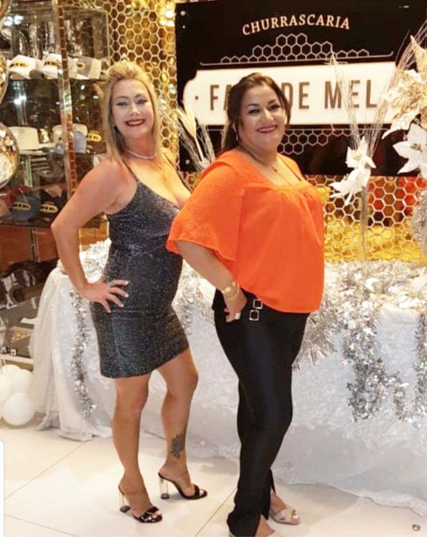 A empresária Clênia Moura (à esquerda) estava entre as convidadas que fizeram coro ao parabéns para a cerimonialista Dâmaris Cordeiro, sexta-feira última na Churrascaria Favo de Mel.