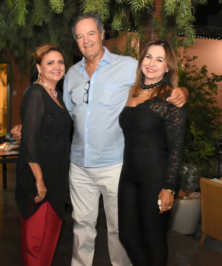 Lúcia Valadão entre os irmãos Fernando e Eliane Rassi na festa de aniversário da amiga Maura Limongi