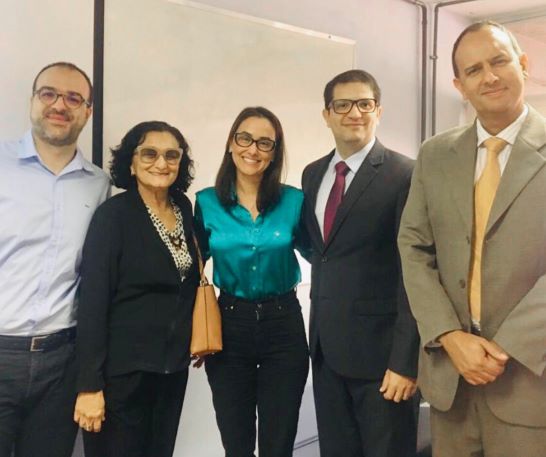 Depois de exaustivos estudos e discussões sobre o assunto até durante os treinos na academia, a advogada Ilana Seabra (ao centro) concluiu sua dissertação de mestrado pela UFG:”O estudo de caso em compliance, transnacionais e direitos humanos”. Compartilhou a conquista com os professores Frank Tavares, Osvaldira Seabra Oliveira , Saulo de Oliveir Coelho e Alexandre Walmott Borges.
