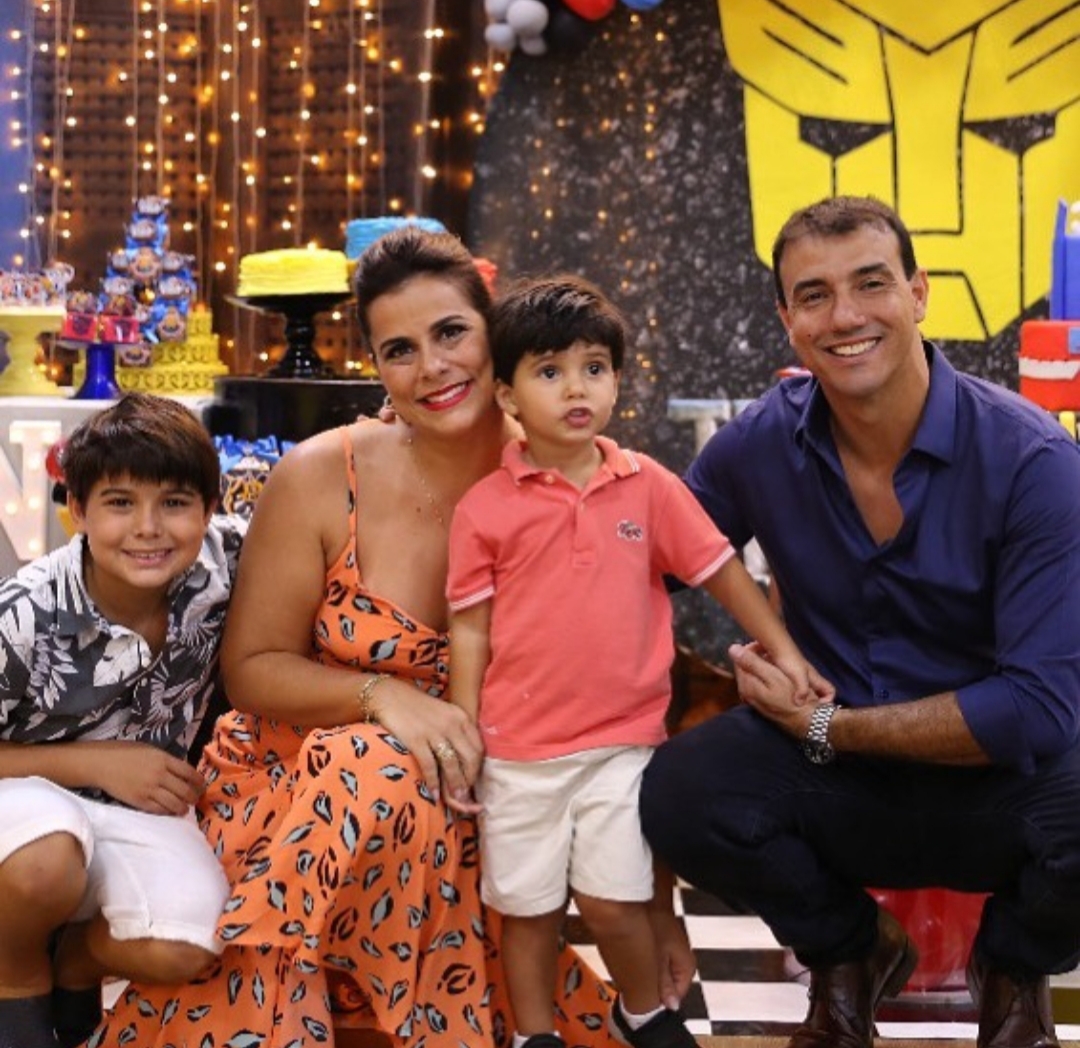 O médico Fabrício Las Casas e a advogada Roberta Gebrin Las Casas, com os filhos  Ian e Davi. fazem o caminho de volta a Goiânia depois de uma curta temporada no apartamento dos pais dele,Simone e Alberto Las Casas, na elegante Vieira Souto.