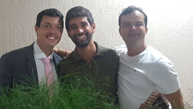 Amigos e empreendedores o advogado Guilhermes Lopes e farmacêutico Poatã Casonato se despedem de Guilherme Margonari (ao centro) que deixa Goiânia rumo a Florianópolis para novos desafios. Os três implantaram em Goiânia os seminários da instituição chilena Cóndor Blanco, hoje estruturada e com total apoio do líder Suryavan Solar, como coach e liderança.
