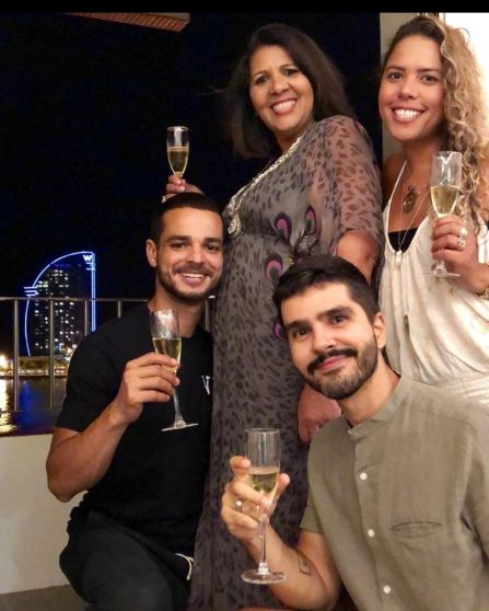 A empresária goiana Luciane Teixeira (esquerda) comemorou seu aniversário dia 2 de agosto em Barcelona-Espanha junto com a filha Maria Clara Teixeira, o empresário Eduardo Fernandes (de preto) e o fotógrafo Eltom Rocha
