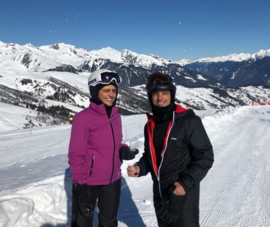 Os médicos Giulliana Limongi e Théo Costa curtem temporada de esqui na estação de Tignes-França, com direito a manobras devidamente acompanhados por um instrutor