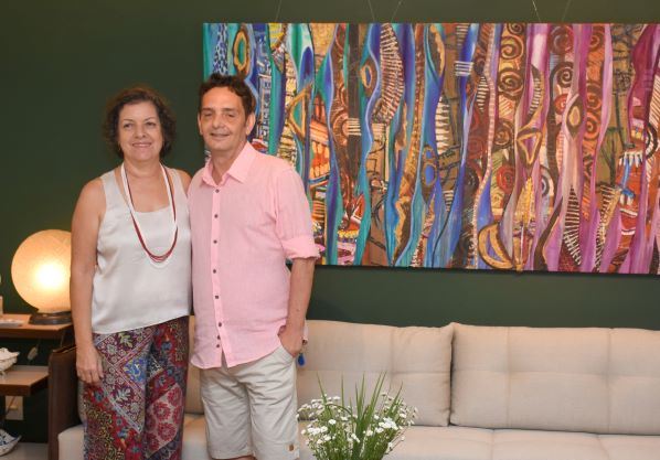 Maria Elizabeth e Marco Fracino estavam entre os convidados do vernissage da mostra de antiguidades de Luiza Siqueira