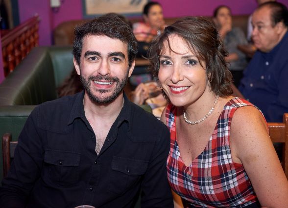 Os amigos Lyniker Passos Nunes (jornalista)  e Carmem Paiva (psicóloga) curtiram a festa de 50 anos do engenheiro e empresário Melchiaques da Cunha Neto, no  Bolshoi Pub