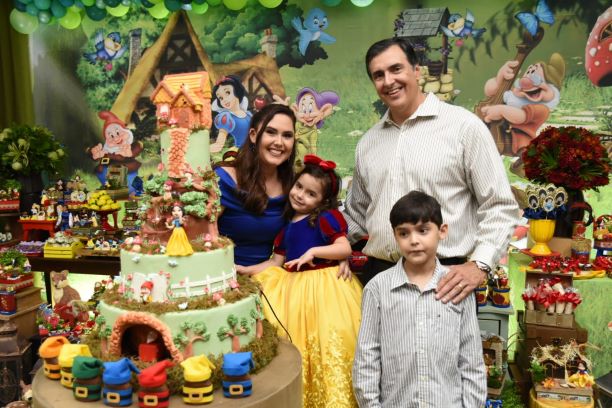 O casal Júlio Silva e Beatriz Fagundes, blogueira de mais de 300 mil seguidores (@catalogodefestas), comemorou o aniversário dos filhos João (7 anos) e Sofia (3 anos) com festa temática