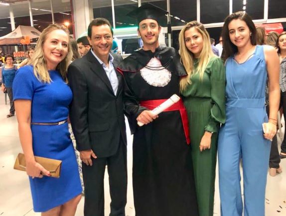 Os jornalistas Luciana Finholdt Lopes e Luís Carlos Lopes são só orgulho com o filho Vitor, que se formou em Direito pela PUC-GO,  já com a carteira da OAB em mãos. Na foto, o momento feliz é também compartilhado com Jéssika Iwamoto, arquiteta, namorada do jovem advogado, que já atua no conceituado escritório Lara Martins.