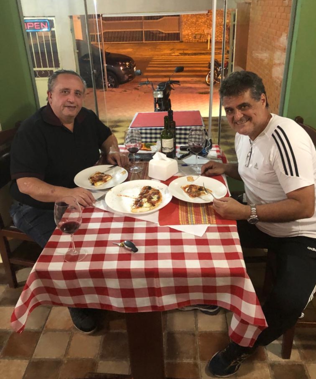 Ainda expectativa da reabertura dos restaurantes o empresário Luiz Ricardo Santos de Paula recebeu o amigo Elpídio Fiorda (Assoluto) na Pizza Luiz, para a preparação da continuidade do seguimento do delivery em seus estabelecimentos.