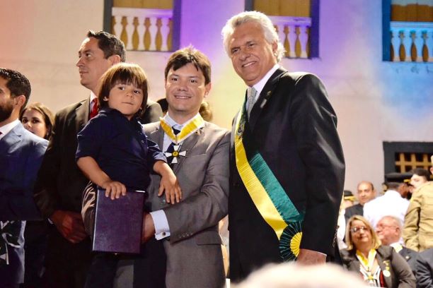 O presidente do Conselho Regional de Medicina do Estado de Goiás (Cremego), Leonardo Mariano Reis, foi um dos  homenageados com a comenda Ordem do Mérito Anhanguera entregue pelo governador Ronaldo Caiado durante a transferência da capital para cidade de Goiás. Na foto,  ele colocou em cena o  filhote Eduardo.
