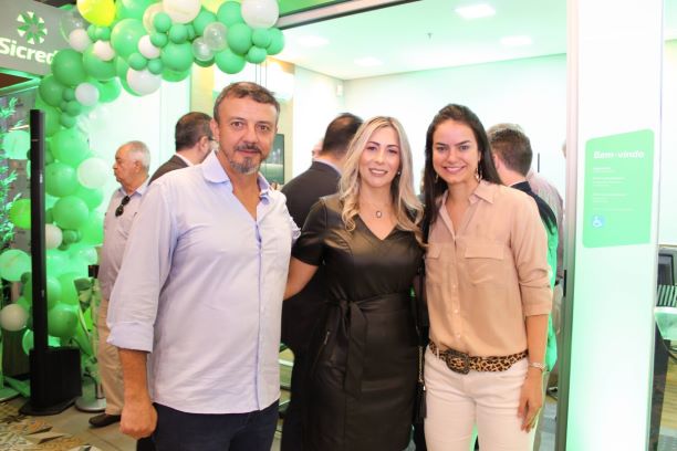 O superintendente do Mega Moda Shopping, Chrystiano Câmara, com a gerente de relacionamento Aline Lôbo (centro0 e a gerente de agência Sicredi Cerrado, Ilma Gomes, na inauguração da nova unidade da instituição financeira dentro do centro de compras da região da 44