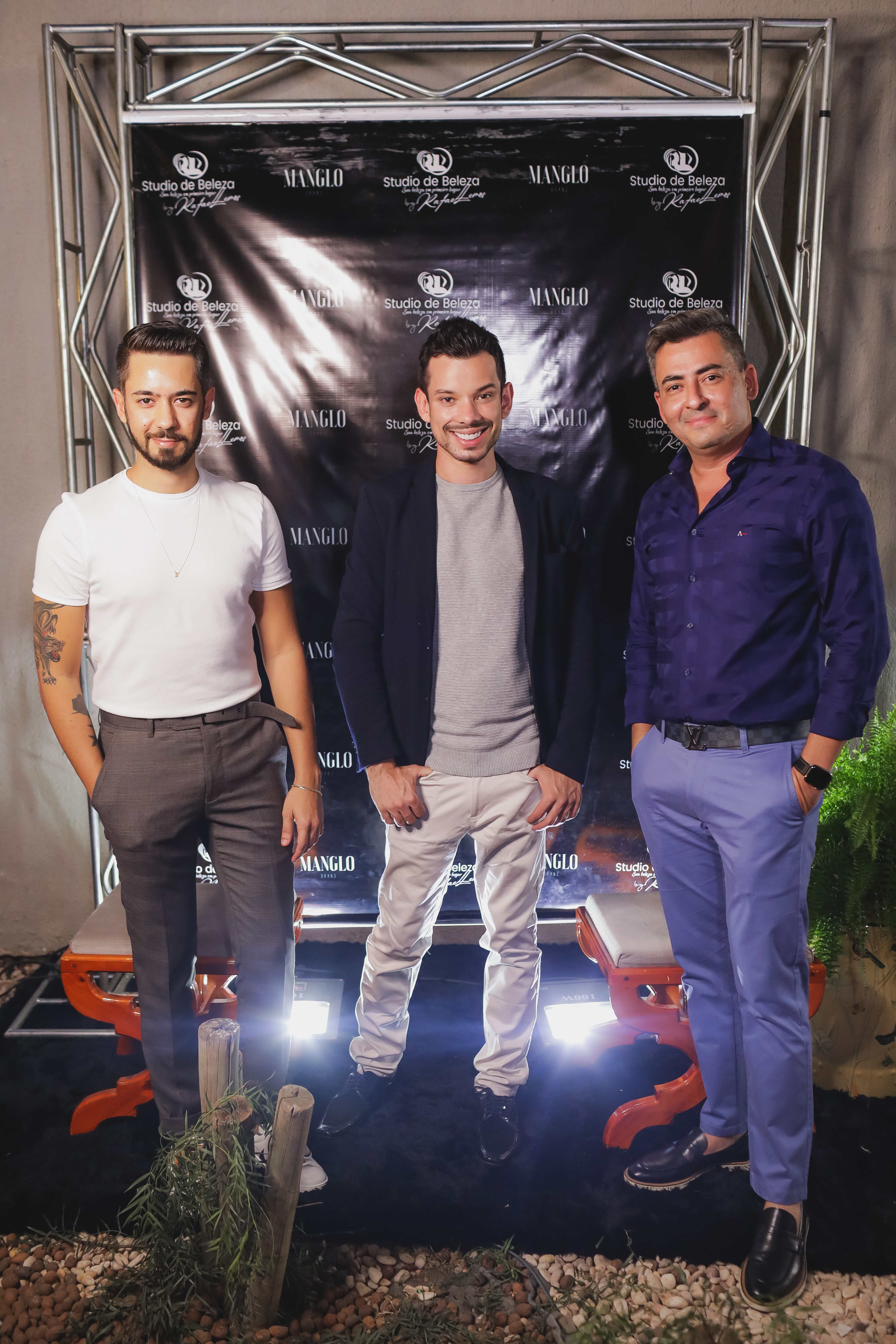 O maquiador das misses, Rafael Lemos (centro), recebeu convidados, juntamente com o sócios   Fernando Neto e Alessandro Ferreira, para conhecer em primeira mão seu Studio de Beleza, localizado na  Rua 9, Setor Marista. As clientes contarão com serviços de tratamento capilar completo, coloração em geralalisamentos , dia de noiva, penteados, maquiagens, cortes, alongamento de unha, manicure e pedicure além de designer de sobrancelhas.