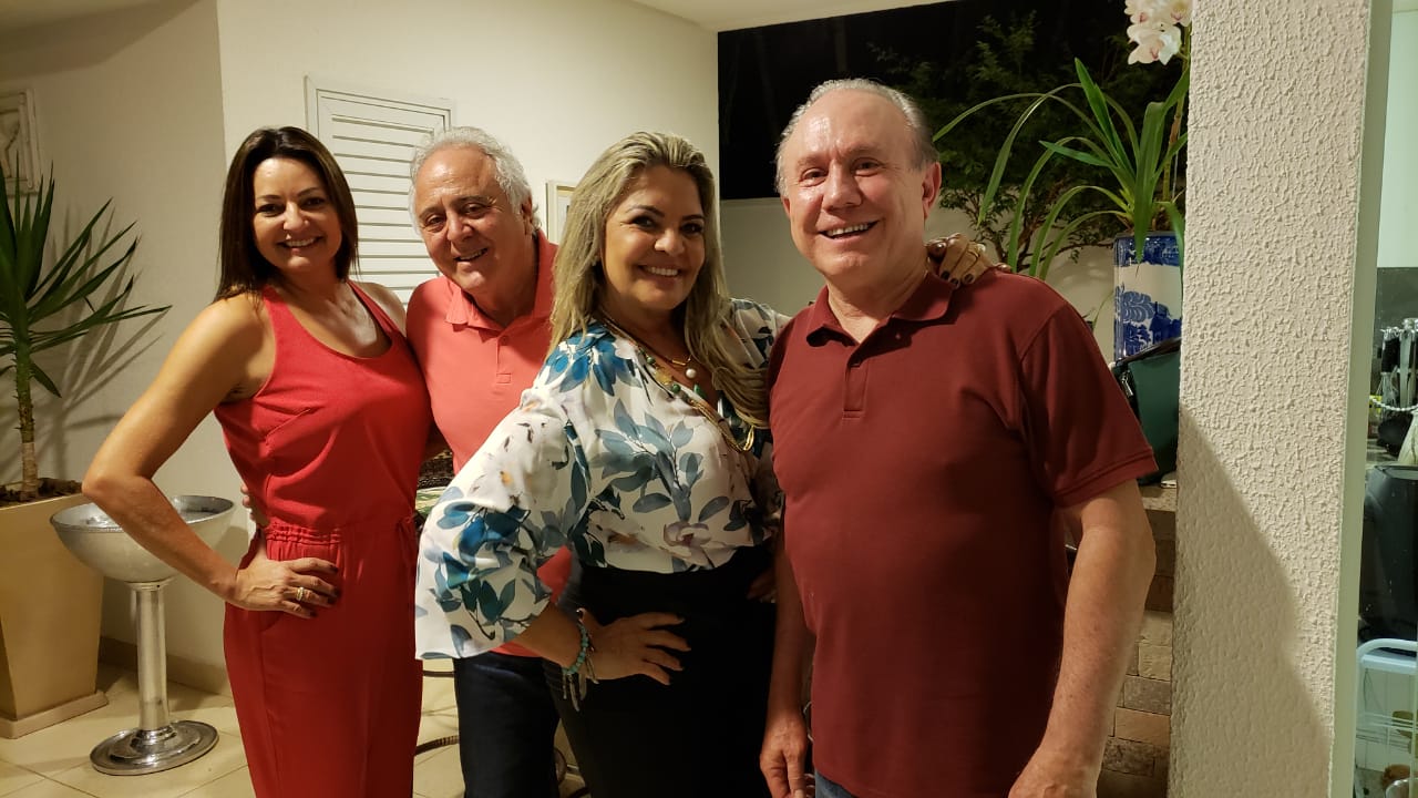 O casal Hélio Costa e Helenice (centro) foram recebidos por Cristiane Jaime Peixoto e Eládio Amorim sexta-feira última em jantar de confraternização em sua casa no Alphaville Ipê.