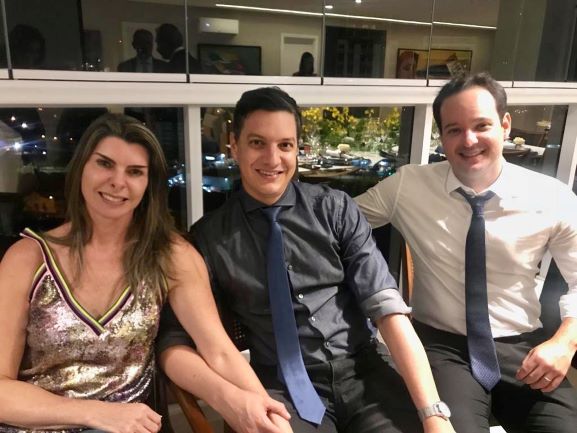 Marcela e Alberto Camarota, médicos, com o anfitrião Dhyego Curado