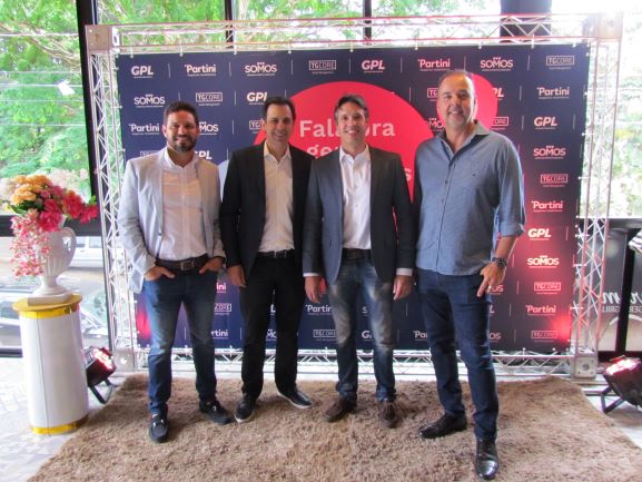 Adriano Carrijo (à esquerda), Fernando Razuk, Rodrigo Meirelles e Guilherme Pinheiro receberam profissionais do mercado imobiliário no Bahrem, para apresentação do residencial Talk Marista.