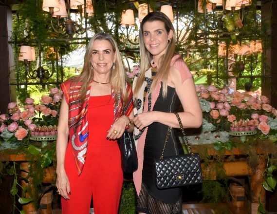 Elba e Carolina Jacinto de Melo, mãe e filha irradiaram elegância e beleza na festa de aniversário de Carolina Figueiredo Marques, na casa de Cláudia Scodro e Sandro Mabel