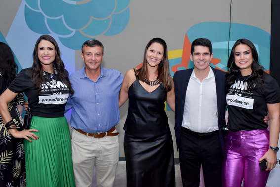 Thâmara Zaia, gerente de Marketing,  Chrystiano Câmara, superintendente do Mega Moda;  Priscila Cardoso, gerente Financeira; Carlos Luciano, presidente do Grupo Mega Moda;  e Aline Lobo, gerente de Marketing de Relacionamento e Merchandising, comandaram o  Mega Moda Fashion 2019.