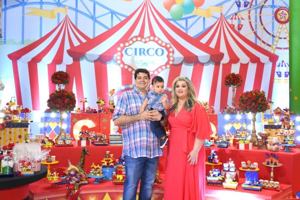 Roberta Lôbo Esselyn e Marcus Freire comemoraram o primeiro aniversário do filho Mateus em festa na Casa X. O tema foi “O Circo do Mateus!”
