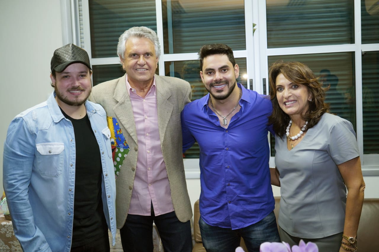 O governador Ronaldo Caiado com ex-primeira-dama de Goiás e ex-deputada federal, Maria Bahia Peixoto Valadão e a filha Lilian Valadão.