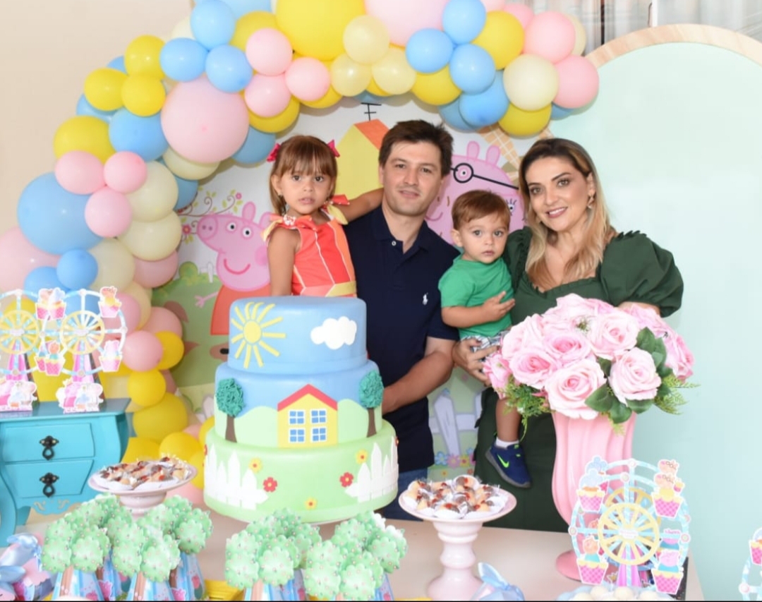 Os médicos Andreia de Paula Souza e André Luiz Mendes Nogueira comemoraram o terceiro aniversário da filha Antonella com festa para a família, sábado passado, na fazenda dos avós maternos Antônio Carlos de Souza Lima e Tereza Cristina, em Bela Vista. O irmãozinho Rafael pegou “carona” na mesa do parabéns.