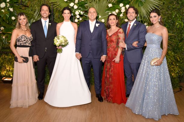 A mãe do noivo, Ivana de Castro Carneiro Tomé Oliveira e os filhos e noras Aryane-João Gabriel Tomé e Maria Júlia-Vitor Tomé