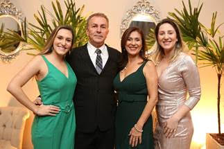 O presidente da Ademi-GO, Roberto Elias Fernandes, ao lado da sua Valéria e das as filhas Cíntia e Andreia, receberam os convidados da festa de entrega do 1º Prêmio Ademi de Responsabilidade Socioambiental, realizada na Maison Florency.