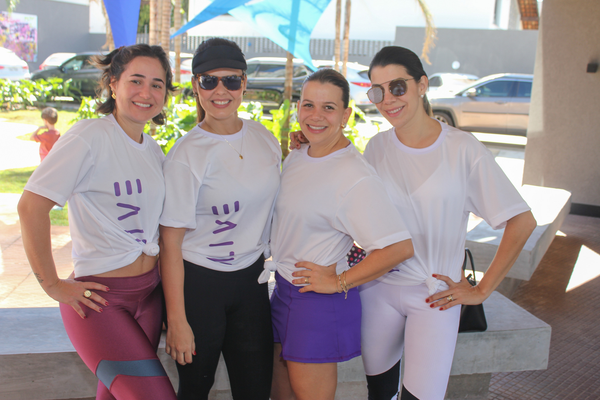 Izabela Meireles, Isabelle Crispim, Camila Seronni e Luisa Seronni participaram de aula coletiva de ritmos promovida pela família Rodrigues da Cunha no Espaço Alive no último final de semana. De acesso livre e gratuito, o ambiente é uma opção para os moradores e visitantes da T-55 (Setor Bueno) passearem e praticarem atividades físicas apreciando as belas telas de arte urbana expostas no espaço.