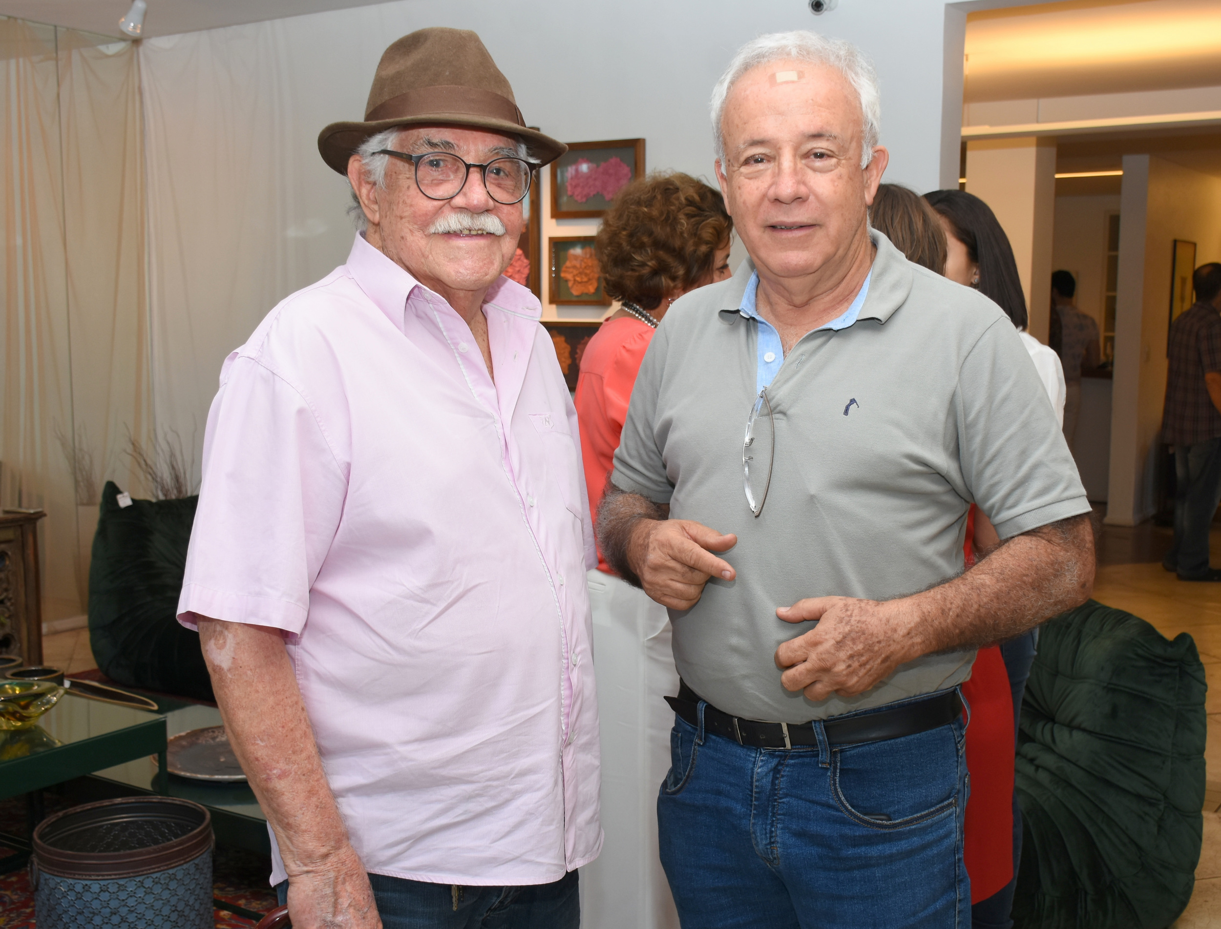 O artista plástico Amaury Meneses e o presidente da Saneago, Jalles Siqueira, marido da anfitriã, Luiza, se encontraram na noite da Elementos Móveis.